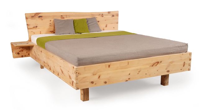 Unser Massivholzbett Vita, besticht durch seine Handwerklichen Details, wie die Klassischen Fingerzinken am Fußteil. Das Kopfteil ist geschlossen, hat aber oben einen natürlichen Schwung. Die Einzelablage kann auch mit einer Doppelablage oder einer Schublade versehen werden. Das Kopfteil ist 7° schräg.